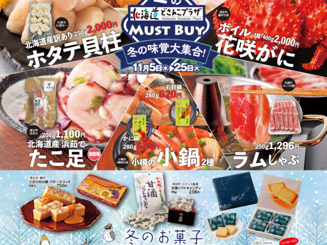 どさんこプラザお知らせ2025/10/25【11月フェア】冬のMUST BUY~冬の味覚大集合!~北海道の冬を代表する“おいしい名物”が一堂に! 11月5日より、北海道どさんこプ…