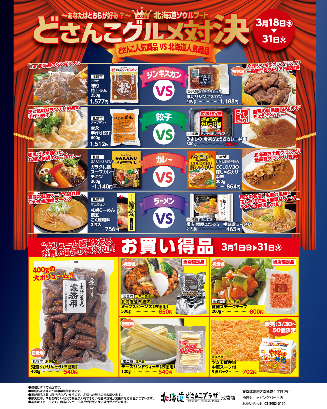 3月18日からは北海道のソウルフードを集めた「どさんこグルメ対決」を開催!