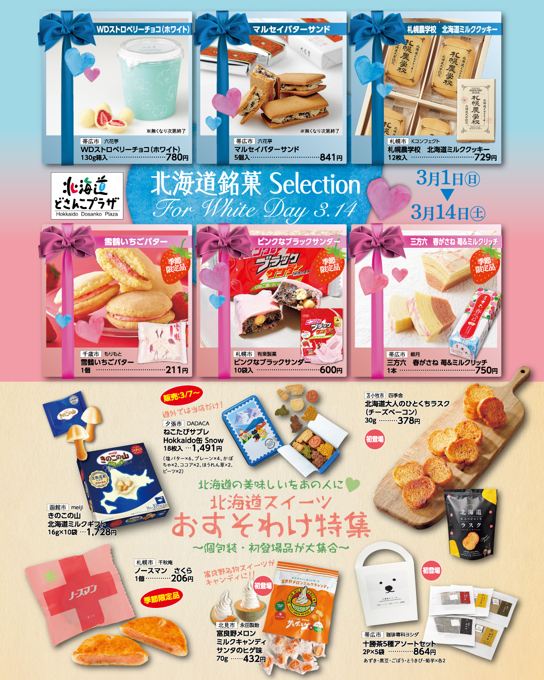 3月1日より「北海道銘菓Selection for White Day」を開催します。